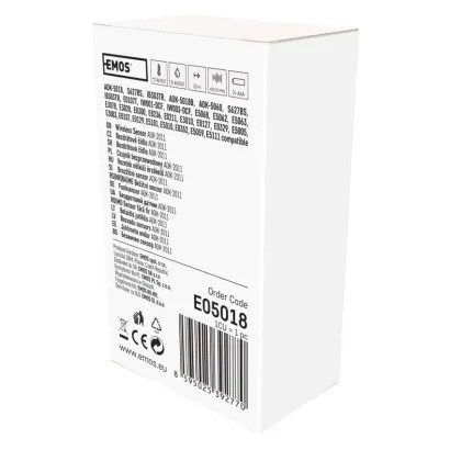 Czujnik bezprzewodowy AOK5018B marki EMOS o zasięgudo 30m . Czujnik zasilany jest dwoma bateriami AAA . Przeznaczony jest jako zamienny czujnik do jednostki centralnej: AOK-5018B, AOK-5060, S627BS, IB303TR, E0107T, IW001-DCF, IW003-DCF, E5068, E5062, E5063, E3078, E3028, E0300, E8236, E0211, E3010, E0127, E0329, E5005, E3003, E0107, E0129, E5101, E5010, E0352, E5059, E5111.