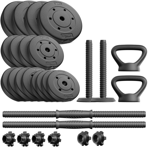 Twój trening, twoje zasady! Różne obciążenia umożliwiają kontrolę nad intensywnością. To sprawia, że są idealne dla każdego — zarówno dla tych na początkowym etapie, jak i zaawansowanych. Cały zestaw jest kompaktowy, co ułatwia przechowywanie w dowolnym miejscu. Gryfy, kettlebell i łącznik posiadają wzmocnienie w postaci metalowego rdzenia, które znacznie zwiększa ich trwałość i stabilność.