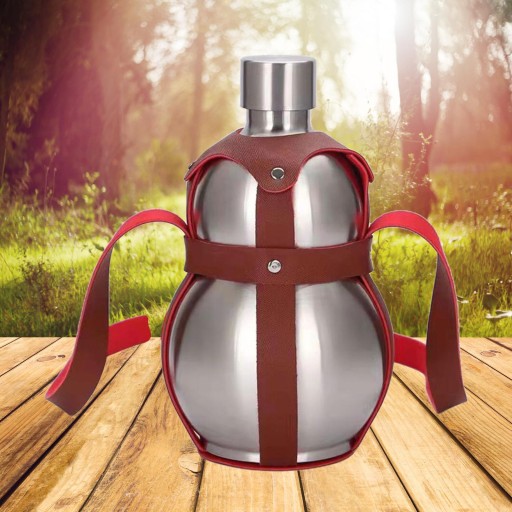 Непротекающая фляжка Кувшин для вина в форме тыквы, кожаный футляр, 500 мл 2,5 л, серебро