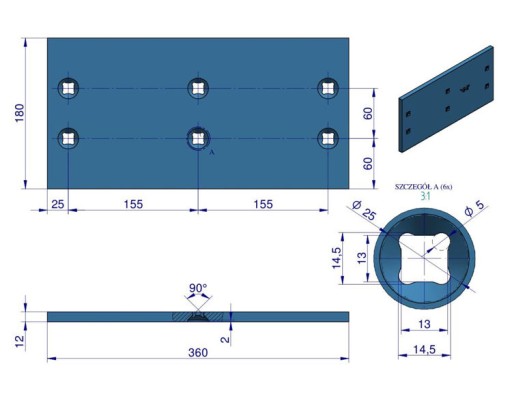 - Rozstaw pomiędzy 1-2 otworem: 155 mm