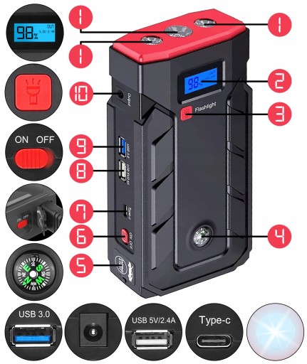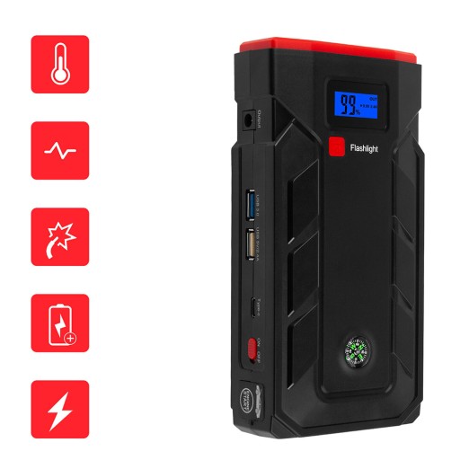 Booster dzięki zastosowaniu nowoczesnej technologii umożliwia uruchomienie praktycznie 12V każdego auta osobowego, dostawczego, skutera, quada, łodzi bądź motocykla. Wbudowany bardzo mocny akumulator 10400 mAh umożliwia pracę w szerokim zakresie temperatur od -25℃ do 60℃.