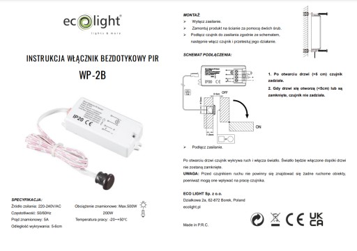 Rodzaj Włącznik uruchamiany ruchem drzwi