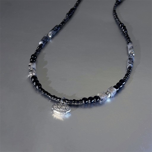 Ожерелье с замком мира из черного песка, золота и камня из натурального камня