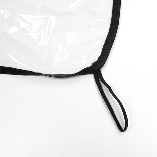 Folia w górnej części posiada grubą gumę, którą zakładasz za zagłówkiem. W dolnej części znajdują się dwie, długie gumki. Folia jest uniwersalna, w każdym aucie znajdziesz jakiś punkt na dole lub bokach fotela, który pozwala na zapięcie za niego gumki i stabilny montaż folii.