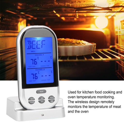 3. Używany do gotowania żywności w kuchni i monitorowania temperatury piekarnika. Bezprzewodowa konstrukcja zdalnie monitoruje temperaturę mięsa i piekarnika bez konieczności przebywania tam przez cały czas.