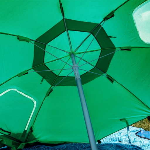 Dwa okienka w parasolu plażowym Triton umożliwiają przepływ powietrza wewnątrz parasola, co zapewnia świeże powietrze i pomaga uniknąć parowania. Dzięki temu można utrzymać przyjemny klimat, zwłaszcza podczas gorących dni na plaży.