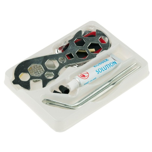 Zestaw naprawczy jest bardzo poręczny, zajmuje mało miejsca, dzięki czemu możesz mieć go przy sobie. Zmieści się w każdej kieszeni, czy też sakwie. Będziesz mógł sam szybko i łatwo dokonać naprawy w swoim rowerze.