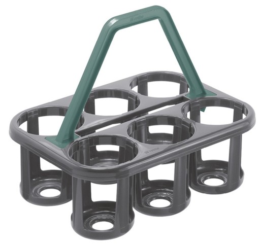 Koszyk na butelki z sześcioma solidnymi uchwytami na butelki o pojemności do 1,5 litra ma wymiary 350 x 260 x 270 mm (dł. X szer. X wys.) I ma elegancki, dwukolorowy wygląd. Podczas gdy uchwyt jest zielony, to dolna część na butelki jest w kolorze antracytowym.