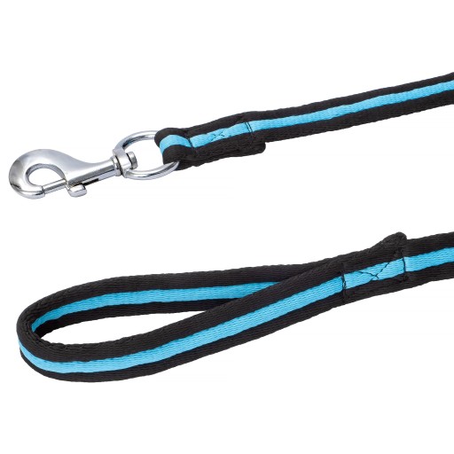 Lonża wykonana z miękkiego materiału nylonowego. Wyposażona w obrotowy karabińczyk.