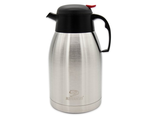 Termos marki Meyerhoff ® wykonany z wysokiej jakości stali nierdzewnej z izolacją próżniową, która pozwala na długo utrzymać temperaturę ciepłych oraz zimnych napojów wewnątrz termosu. Praktyczny system otwierania i zamykania za pomocą pokrywki z przyciskiem sprawia, iż korzystanie z termosu jest łatwe i wygodne. Całość wykonana jest z przyjaznych środowisku materiałów i przystosowana jest do kontaktu z napojami. Nie nadaje się do zmywarek.