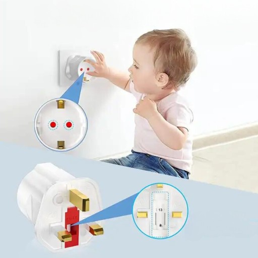 Przejściówka posiada zabezpieczenia w postaci zatyczek lub mechanizmów blokujących, które zapobiegają dostępowi małych dzieci, w tym niemowląt, do gniazda elektrycznego, zwiększając bezpieczeństwo w domu.