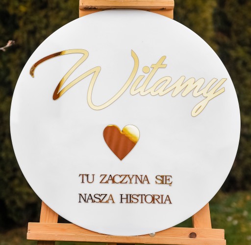UWAGA! Tablica sprzedawana jest bez sztalugi. Produkt nie jest personalizowany. Taką samą tablicę z imionami oraz datą można kupić na innej naszej aukcji i posiada on oznaczenie TAB-3ZP.