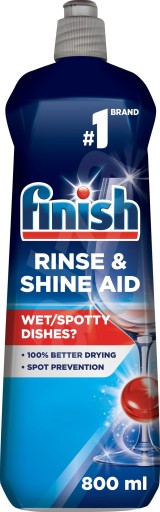Jeśli Twoja zmywarka kończy zmywanie, a Ty wciąż wyjmujesz z niej mokre naczynia, to znak, że nie używasz płynu nabłyszczającego Finish Rinse Aid, który nie tylko eliminuje zacieki, nalot i nadaje olśniewający połysk, ale również przyspiesza schnięcie naczyń i pozostawia świeży zapach.