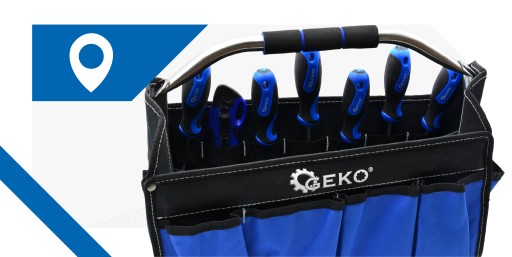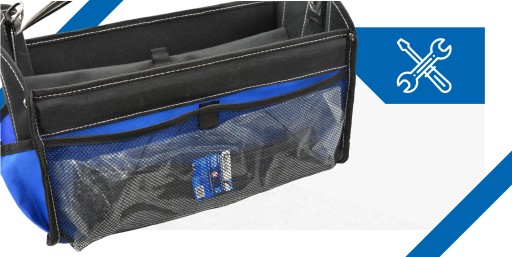 Torba Geko oferuje dużą przestrzeń. Wewnątrz niej znajdziesz aż 7 uchwytów na narzędzia oraz specjalną przegrodę oddzielającą. Dodatkowo, z przodu torby umieszczono 4 kieszenie otwarte. A to wciąż nie wszystko! Z tyłu znajdziesz zapinaną na rzep kieszeń z siateczki, a po bokach 5 małych kieszonek otwartych i jedną dużą.