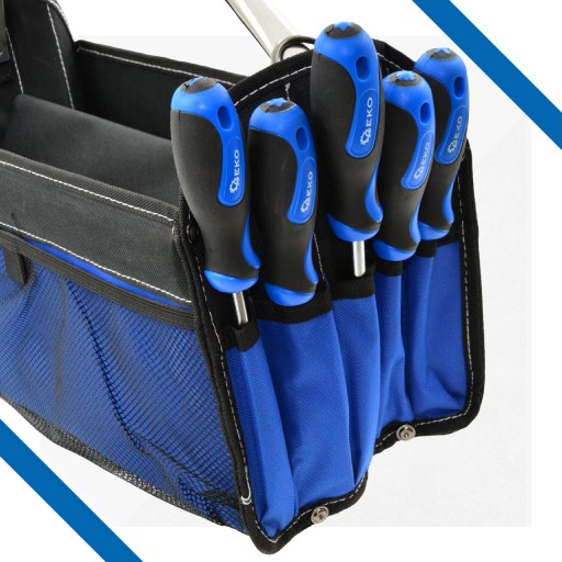 Otwarta torba narzędziowa przyda się nie tylko profesjonaliście, ale także każdemu miłośnikowi majsterkowania. Jest zarówno pojemna, jak i niezwykle wytrzymała i wygodna w użytkowaniu. Dzięki niej Twoja praca stanie się o wiele przyjemniejsza. Przekonaj się samodzielnie!