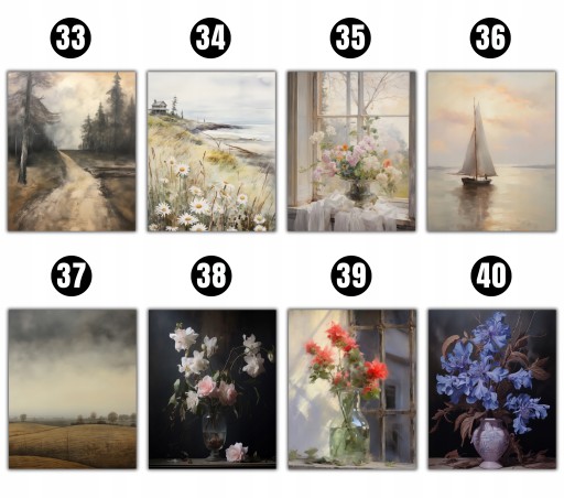 W ofercie posiadamy również inne wzory. Jeśli są Państwo zainteresowani innym wzorem, niż na zdjęciu głównym oferty, to bardzo proszę w uwagach do sprzedawcy, przy płaceniu za zamówienie napisać numer obrazu (numery znajdują się nad wzorami).
