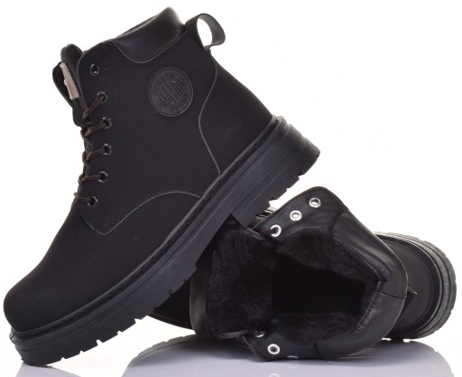 Botki wykonane zostały ze skóry ekologicznej, podeszwa gumowa z agresywnym bieżnikiem.
