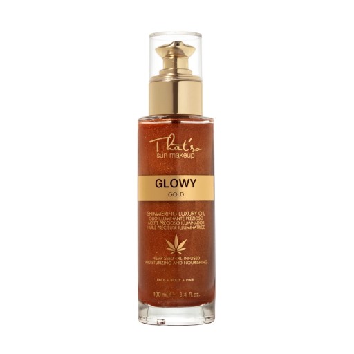 Błyszczący, luksusowy olejek Nawilżający, lekki i świetlisty olejek, który natychmiast nadaje cerze połysk, pozostawiając skórę suchą i nie tłustą. GLOWY GOLD jest wzbogacony olejem konopnym.