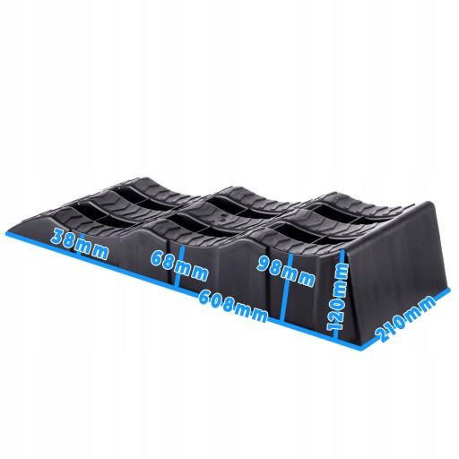 - Wygodne w stosowaniu, posiadają trzy wysokości ułatwiające poziomowanie pojazdów : 38 - 68 - 98 mm