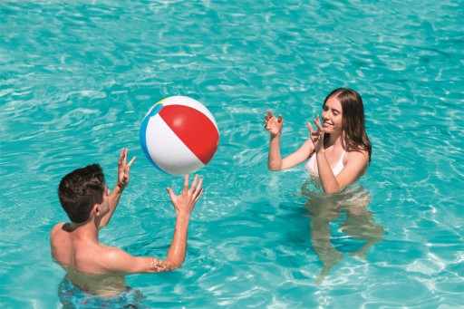 Duża pompowana piłka plażowa o średnicy 51 cm .Doskonała do letnich zabaw na plaży i w basenie. Wykonana z kolorowego, wytrzymałego winylu. Odporna na działanie promieni słonecznych i słonej wody, niezwykle lekka.