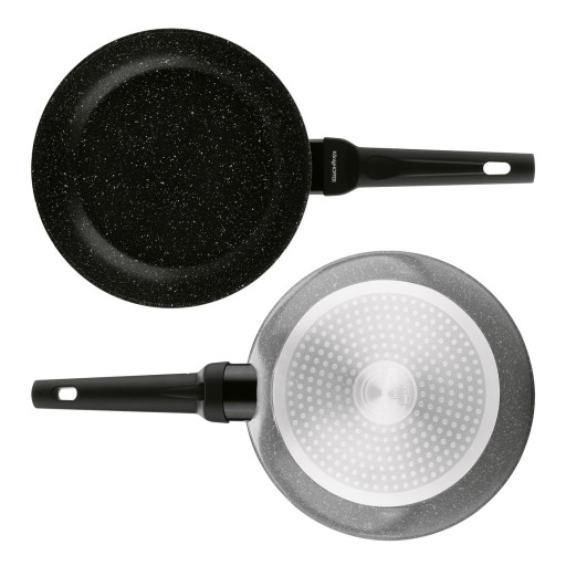 Skład zestawu: - garnek z pokrywą 16 cm, - garnek z pokrywą 20 cm, - garnek z pokrywą 24 cm, - garnek z pokrywą 28 cm, - patelnia 24 cm, - patelnia 28 cm