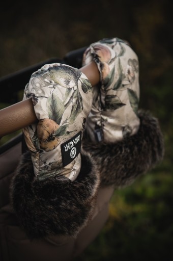 Cieplutkie i wodoodporne Rękawice Velvet zapinane na dyskretny magnes do drążka wózka.