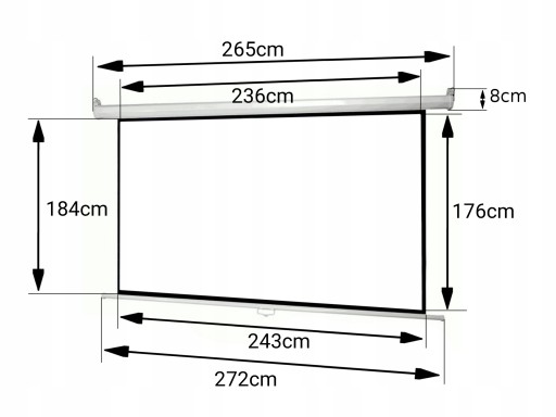 - szerokość kasety na ekran: 265 x 8 cm