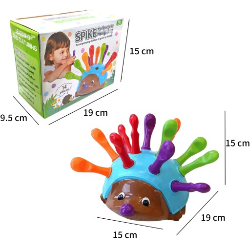 Przesłodki jeżyk oprócz tego ze wygląda bardzo przyjażnie i wzbudza pozytywne emocje wśród dzieci, ma ściągany grzbiet w środku którego znajdują się dwanaście kolorowych kolców z wypustkami bardzo wygodnymi do umieszczenia w rączce.
