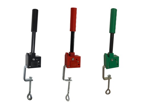 Hamulec mocujemy do blatu za pomocą porządnego ścisku stolarskiego który dołączony jest w zestawie. Zastosowanie takiego rodzaju mocowania pozwala na bardzo mocne zamontowanie hamulca do blatu, zapobiegając przesuwaniu, luzowaniu itd., nawet bardzo mocne, gwałtowne zaciągnięcia nie robią na nim wrażenia, trzyma się bardzo mocno. Maksymalna grubość blatu wynosi 45mm.