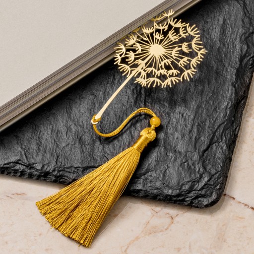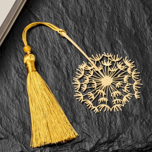 Bardzo elegancka i stylowa zakładka w klasycznym kolorze złota i pełnym symboliki kształcie dmuchawca, który symbolizuje radość, wolność, a także nieograniczone możliwości. Może on również stanowić symbol przemijania, ulotności i śmiertelności.