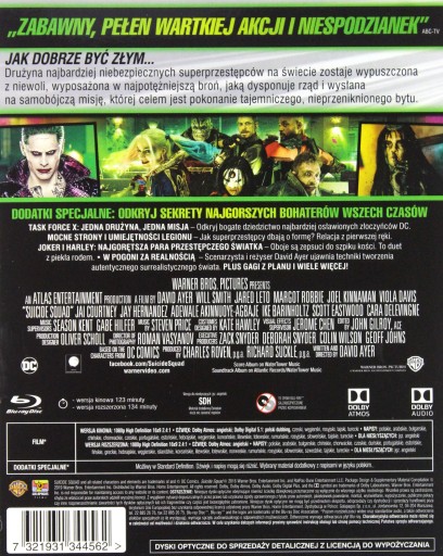 Największe hity DC w wyjątkowej kolekcji! Widowiskowa superprodukcja w gwiazdorskiej obsadzie (Margot Robbie , Will Smith, Jared Leto). Drużyna najbardziej niebezpiecznych superprzestępców na świecie zostaje wypuszczona z niewoli, wyposażona w najpotężniejszą broń, jaką dysponuje rząd i wysłana na samobójczą misję, której celem jest pokonanie tajemniczego, nieprzeniknionego bytu.