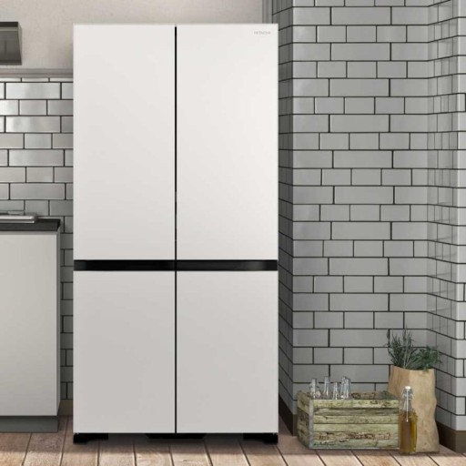 No Frost, 4 drzwi, dolna zamrażarka, szklany front, białe (matowe) szare szkło