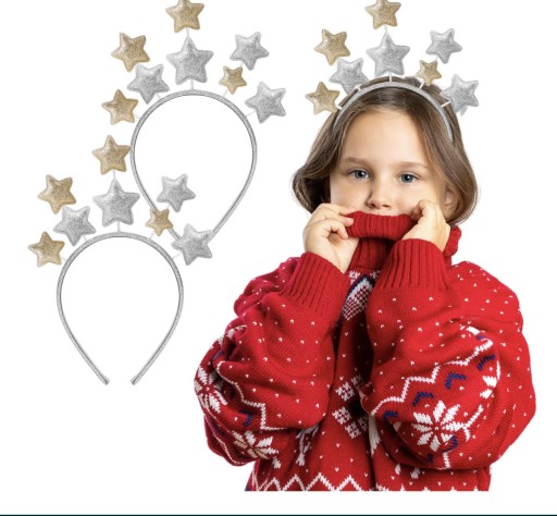 Opaska na głowę z brokatowymi gwiazdkami jest elementem, który idealnie uzupełnia wiele stylizacji. Może być noszona zarówno do eleganckich sukienek, jak i casualowych outfitów, dodając im odrobinę blasku i dziewczęcego uroku.