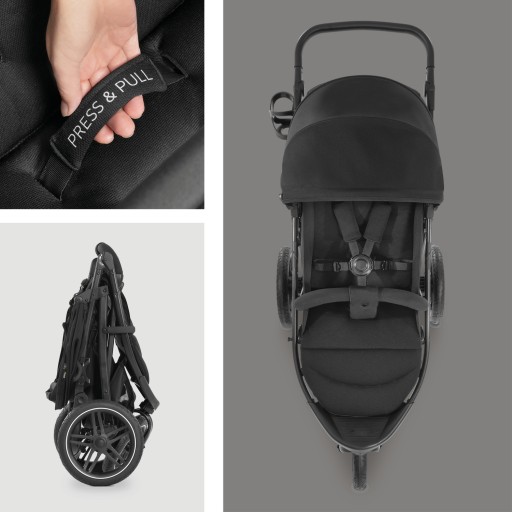 - punkt znaku wypunktowania: Lepsza wysokość robocza dla rodziców, Daje się łatwo manewrować dzięki dużym amortyzowanym kołom, Najwyższa jakość wykonania