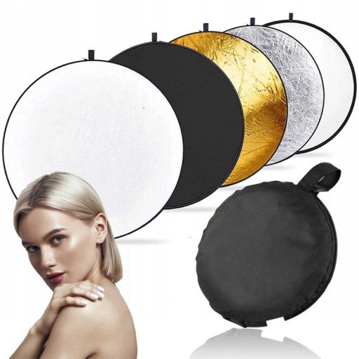 ✔️ 【Odbłyśnik 5 w 1】 Średnica: 60 cm, składany odbłyśnik 5 w 1 to lekkie i przenośne akcesorium oświetleniowe, idealne do oświetlenia studyjnego i oświetlenia zewnętrznego. Dysk jest dostępny w kolorze złotym, srebrnym, białym, czarnym i miękkim świetle, powierzchniowym, a także panelami dyfuzyjnymi do oświetlania obiektów i portretów.