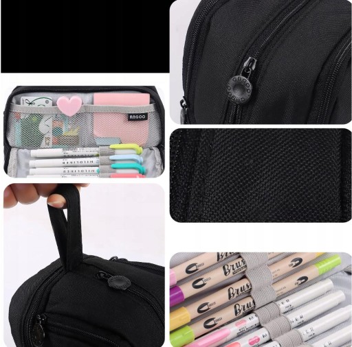 - Unikalna konstrukcja: trzy gładkie zamki błyskawiczne, 4 główne przegrody i przedmioty mogą być dobrze zorganizowane. Ołówki otwierają się do 180 stopni, dno piórnika można otworzyć, aby mieć łatwy dostęp do artykułów piśmiennych.