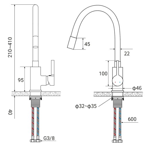 - 💧 - 【Elastyczny kran kuchenny】: w kranach kuchennych zastosowano elastyczne i regulowane węże silikonowe. W ten sposób możesz wykorzystać swój