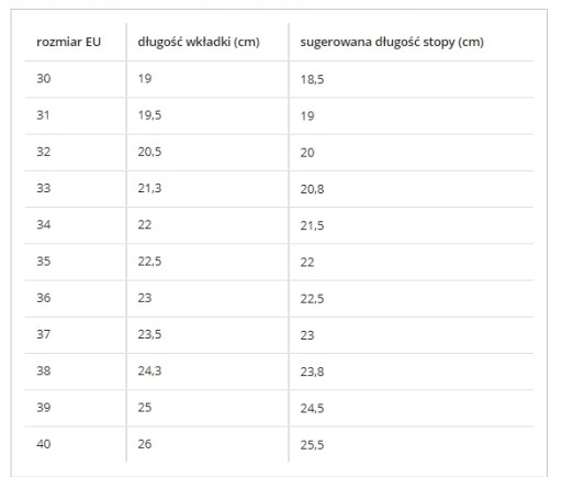 Sugerujemy aby długość wkładki była o ok. 0,5 cm większa