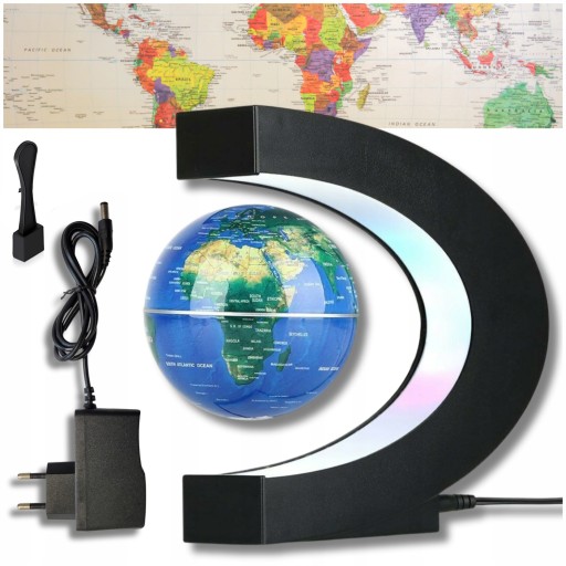🌍Lewitujący globus to innowacyjny gadżet, który wykorzystuje pole elektromagnetyczne, aby kula ziemska mogła lewitować w powietrzu, nie dotykając przy tym stojaka! Jest to odwzorowanie prawdziwej Ziemi, która krąży w przestrzeni po orbicie.