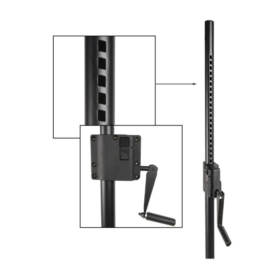 Dzięki SP 22 w łatwy sposób i bez nadmiernego wysiłku umieścisz swoje kolumny głośnikowe na odpowiedniej wysokości. Wystarczy nałożyć kolumnę na sztycę nośną i użyć systemu korbowodowego, aby unosić lub opuszczać nagłośnienie.