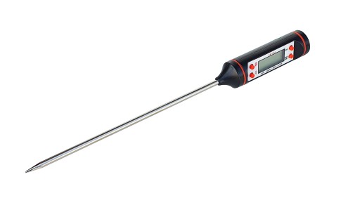 Elektroniczny termometr LCD z sondą przeznaczony jest do pomiaru temperatury płynów, mięs, wypieków, a także wielu innych posiłków. Jest to niezbędny przedmiot w każdej kuchni, dzięki niemu w każdej chwili można skontrolować temperaturę gotowanej potrawy.