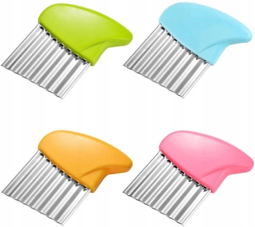 Karbowany nóż do frytek oraz warzyw i owoców. Pozwoli stworzyć falistą strukturę na krojonych produktach. Umożliwia łatwe i równomierne krojenie ziemniaków. Dzięki niemu możemy przygotować w domu karbowane frytki. Doskonały do ozdobnego krojenia warzyw, owoców, a także masła.