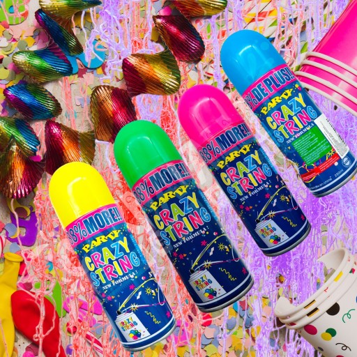 Nieodzowny element każdej imprezy - serpentyna w sprayu. Po prostu naciskasz i psikasz na wszystkie strony, a ze sprayu zaczyna wydobywać się kolorowa masa.