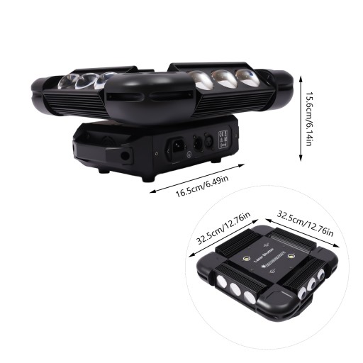 - Łatwy do noszenia: o wielkości 12,76 * 12,76 * 6,14 cala, to ruchome światło głowicy jest bardzo małe, więc możesz łatwo przenieść go na różne okazje.