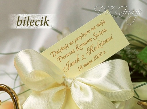 W zestawie dopasowany stylistycznie bilecik z dowolnym nadrukiem. Tekst proszę podać w zamówieniu.
