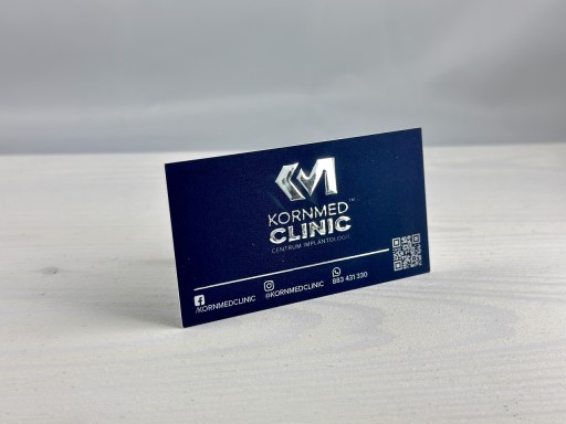 Wizytówki dwustronne ze srebrzeniem dwustronnym, wypukłe srebro 3D na obu stronach, laminowanie mat anti scratch (antyzarysowaniowe), z gotowego projektu - 500 szt.