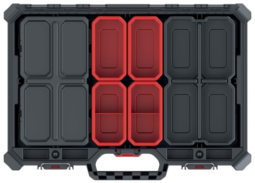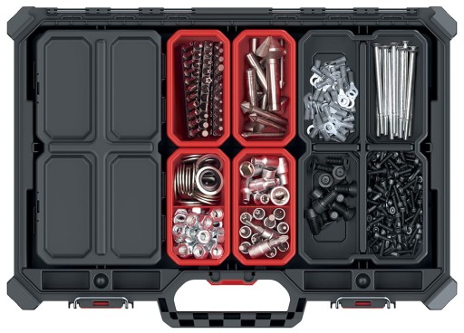 Z wysokością 77 mm, ten organizer oferuje aż 7 wyjmowanych kubeczków oraz 3 wyjmowane przegrody, dzięki którym możesz dowolnie aranżować przestrzeń wewnątrz. Co więcej, posiada 1 organizer MSX Box, idealny do przechowywania drobnych przedmiotów, takich jak śruby czy nakrętki.