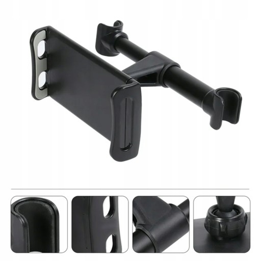 Uchwyt jest łatwy do zamocowania na zagłówku samochodowym, co zapewnia stabilność i bezpieczeństwo podczas podróży.