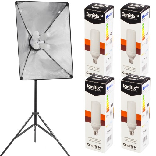 Ciesz się doskonałym oświetleniem w nowej generacji lampy Vidoox™ od CineGEN®. Zmierzając w stronę doskonałości, zastąpiono tradycyjne świetlówki żarówkami LED Ignitix™ a także poprawiono konstrukcję samego softboksa.