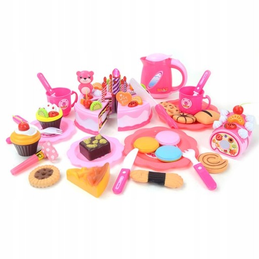 - Dziecko może wedle własnej wyobraźni przybierać tort świeczkami i innymi ozdobami z zestawu, dzięki czemu zabawa nigdy się nie kończy. Jest to doskonała zabawka do wyrabiania zdolności manualnych dziecka